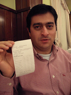 Aqui pode-se ver a já famosa foto da conta... Não interessa muito o valor, o que interessa é que foi em euros, uma vez que os nuestros hermanos já há algum tempo que deixaram as pesetas para as máquinas de diversão...